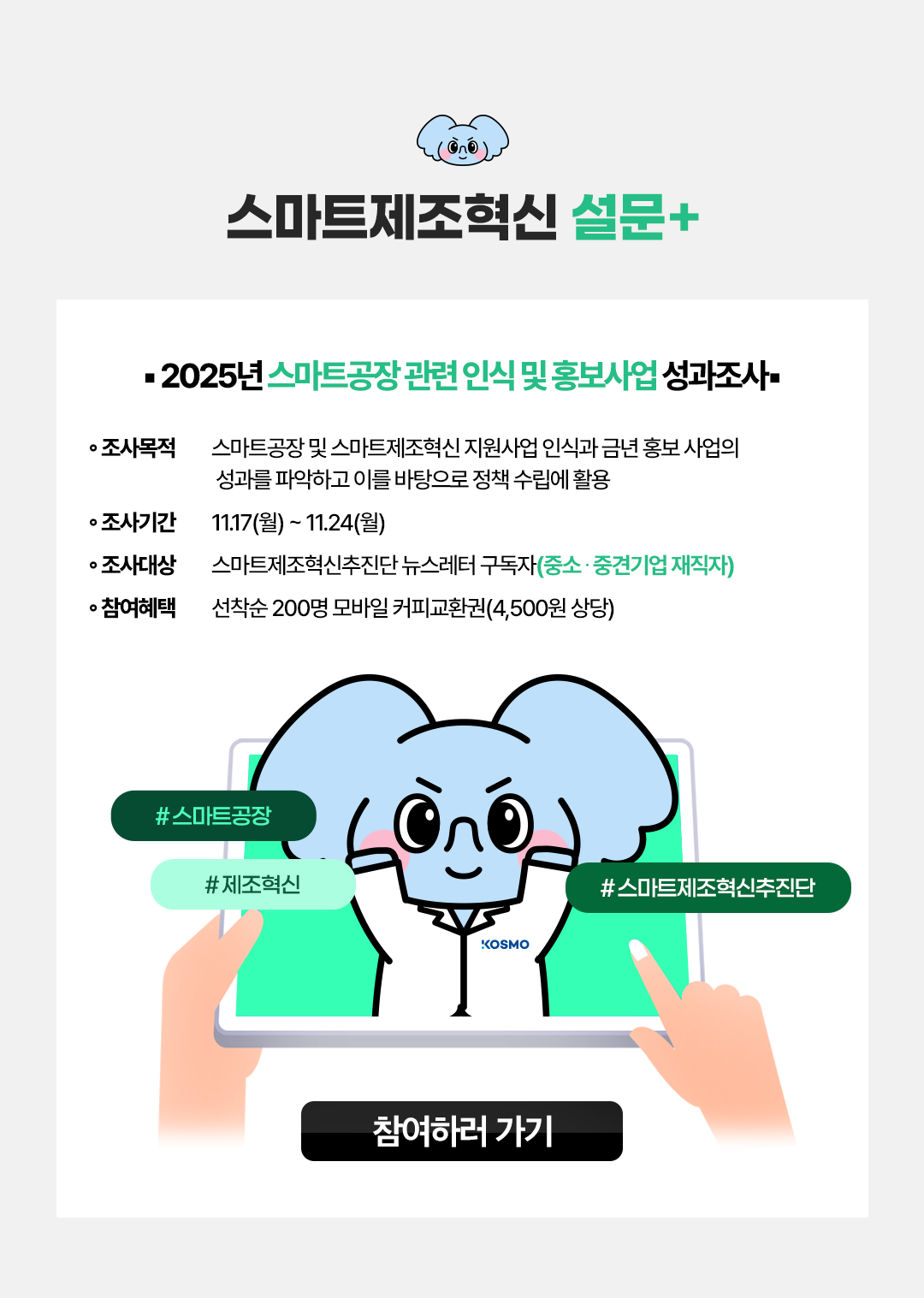 ๐ข์ค๋งํธ๊ณต์ฅ ์ธ์ ์ค๋ฌธ์กฐ์ฌ ์ฐธ์ฌ ์์ฒญ (์ ์ฐฉ์ 200๋ช ์ปคํผ ๊ตํ๊ถ ์ฆ์ )